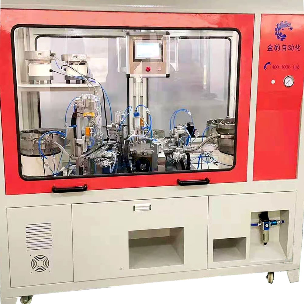 浙江金豹自動化有限公司坐落于享有“電器之都”之稱的樂清市,專業從事自動化生產設備的研發、生產、銷售??砂从脩粢蠖ㄖ品菢俗詣踊O備,為各類開關元件、插座元件廠家提供自動化生產解決方案和技術支持。    公司擁有先進的生產設備,經驗豐富的工程設計研發團隊,專業的生產隊伍,嚴格的產品檢驗制度,確保產品的穩定性,可靠性和長壽命。經過多年的研發并吸取國際機械技術之精華,采用先進的生產工藝,并達到國際同行先進水平。    本公司產品廣泛應用于機械、電子、汽車電氣、接插件、標準件、軸承、醫療品械、五金等行業。特別本公司設計制造的 輕觸開關裝配機、DC插座自動組裝機、按鈕開關裝配機、自動銀點鉚接機及船型開關自動組裝機,贏得了廣大客戶的高度評價。   …